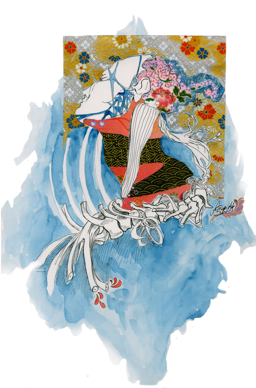 Mixed media illustration of abstract anatomy. Printed on 11"x14.5" 100lb Cover Stock Glossy Paper. Companion piece to "Anatomy 2".