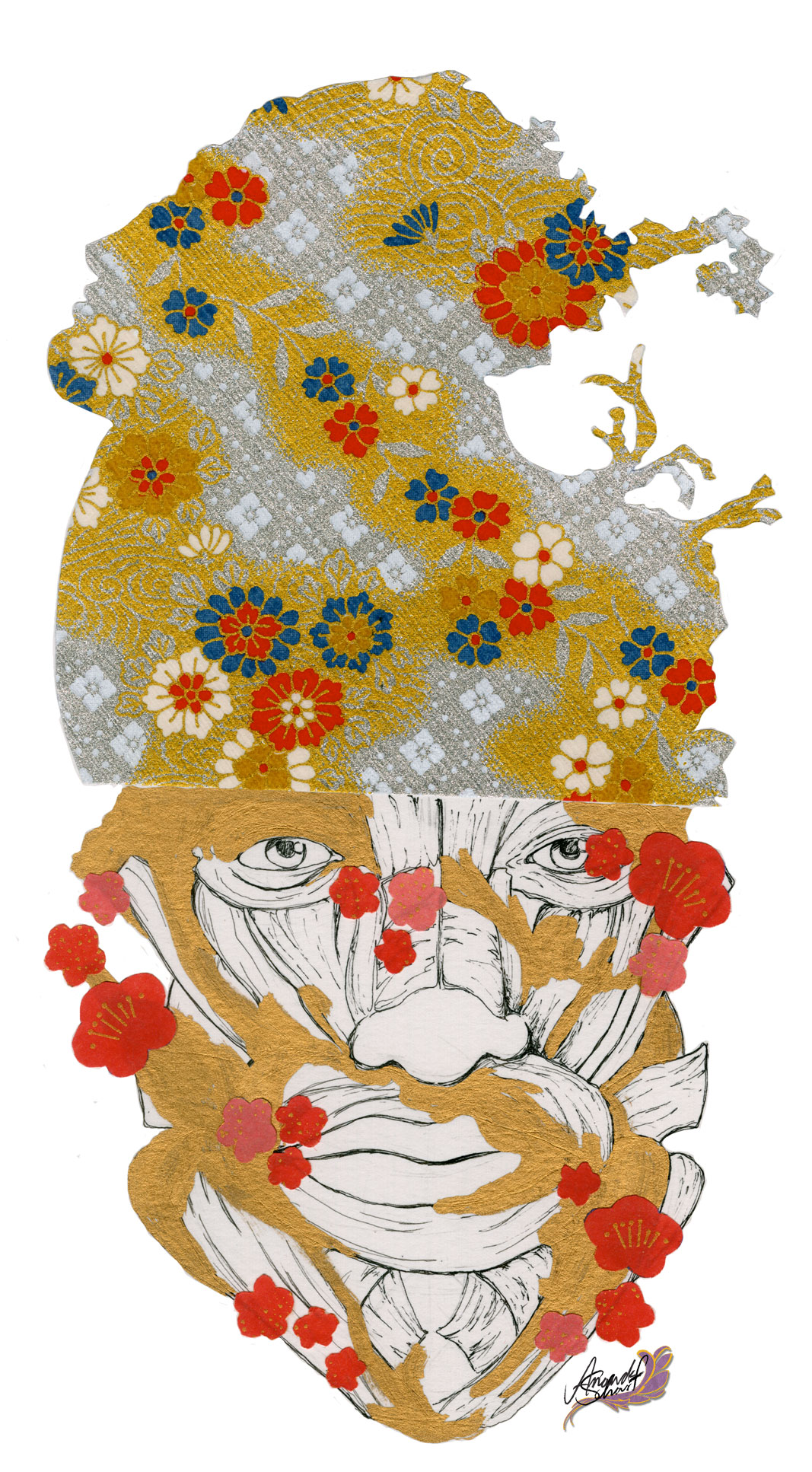Mixed media illustration of abstract anatomy. Printed on 11"x14 1/2" 100lb Cover Stock Glossy Paper, artwork is roughly 7"x13 1/4". Companion piece to "Anatomy 1".