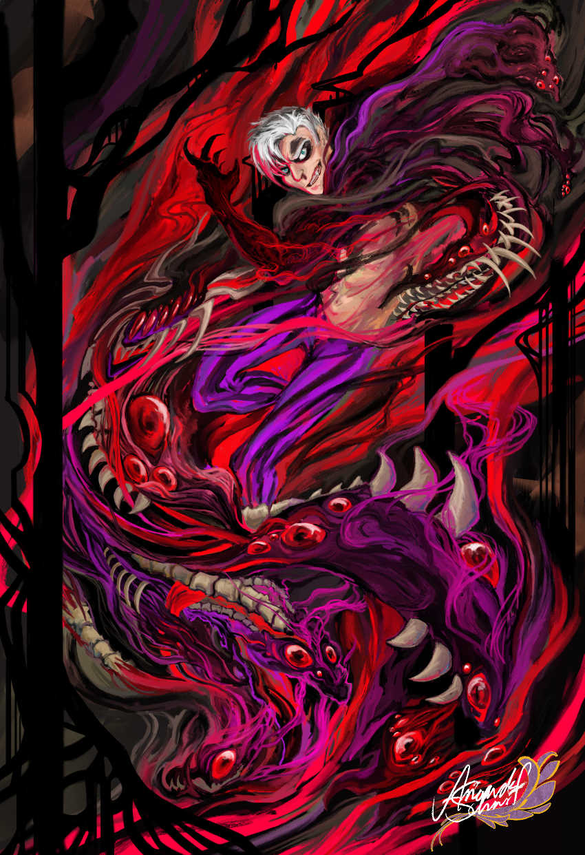 Digital illustration of an original character, Mmael. Printed on 13"x19" 51lb Epson Matte Paper, artwork is roughly 12.75"x18.25".